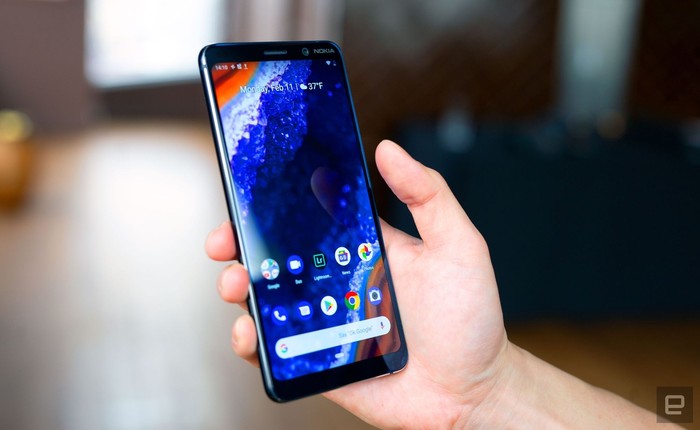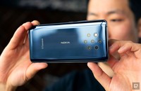 Lima kamera belakang Nokia 9 PureView terdiri dari 2 kamera RGB untuk menangkap warna, 3 kamera monokrom menangkap lebih banyak cahaya. Foto: Chris Velazco/Engadget