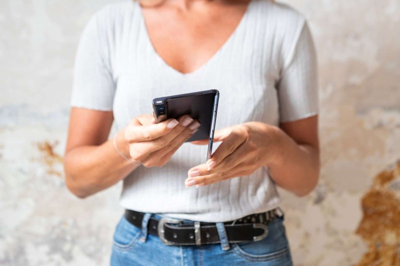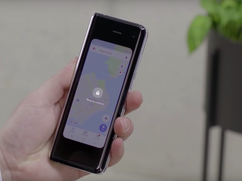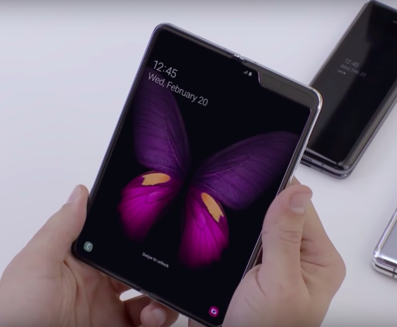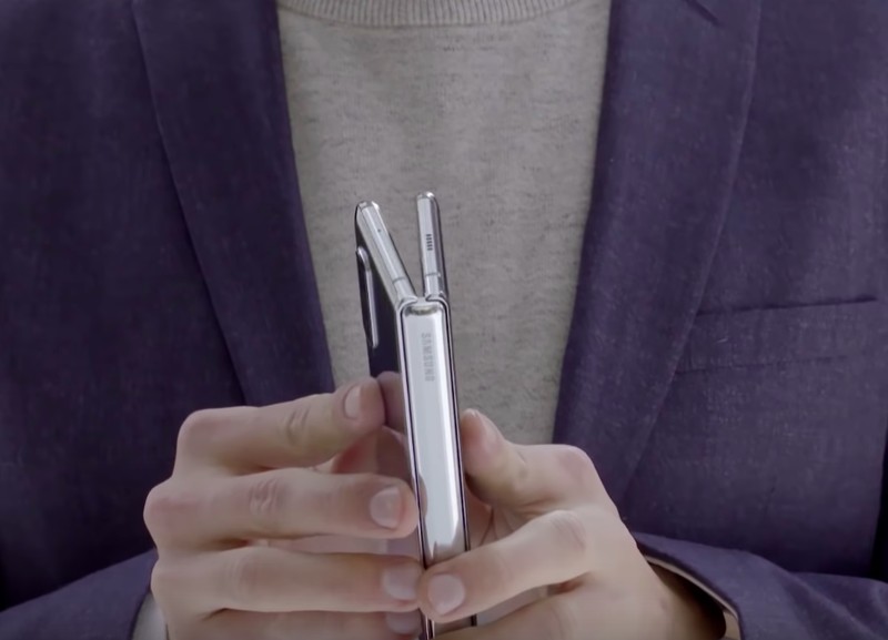 Galaxy Fold dalam keadaan tertutup cukup kecil dalam genggaman tangan. Foto: YouTube Samsung