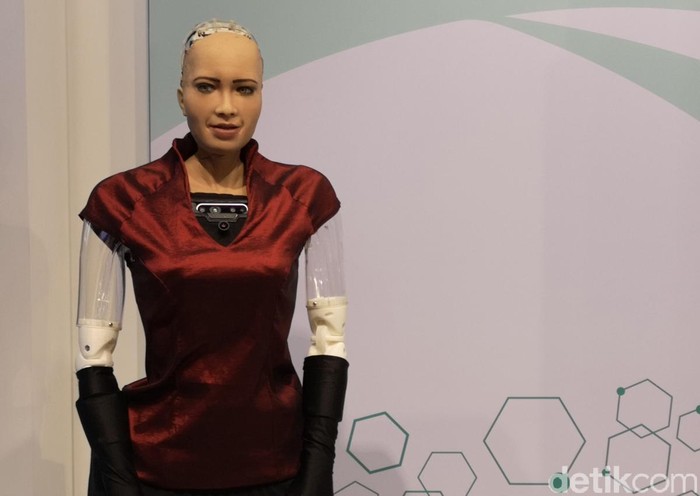 Nah, inilah robot cerdas yang bisa diajak berkomunikasi dengan manusia secara natural. Namanya Sophia, yang diciptakan oleh perusahaan Hong Kong bernama Hanson Robotics. (Foto: detikINET/Ardhi Suryadhi)