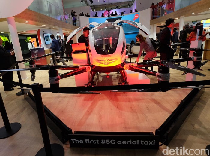 Ini adalah cikal bakal taksi terbang yang dipamerkan Ooredoo. Dan lagi-lagi, solusi ini disokong oleh teknologi 5G. (Foto: detikINET/Adi Fida Rahman)