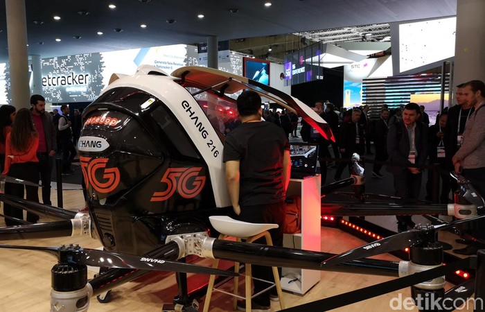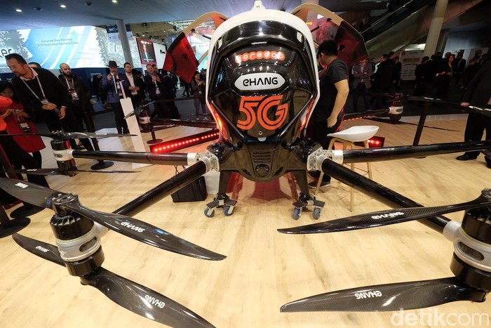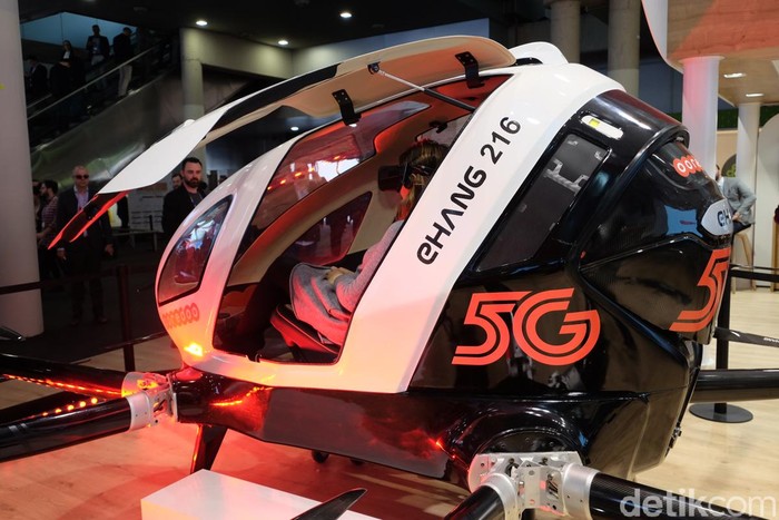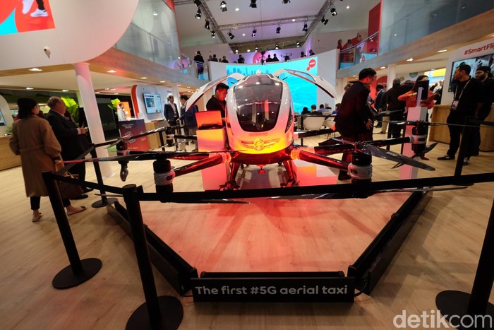 Taksi terbang ini merupakan salah satu pilot project dari implementasi 5G yang dijalankan Ooredoo. (Foto: detikINET/Ardhi Suryadhi)