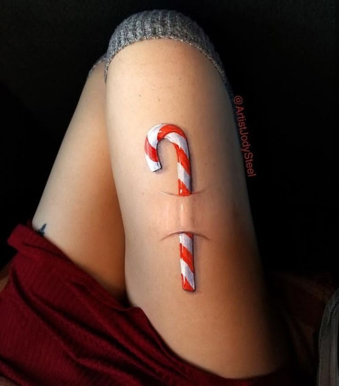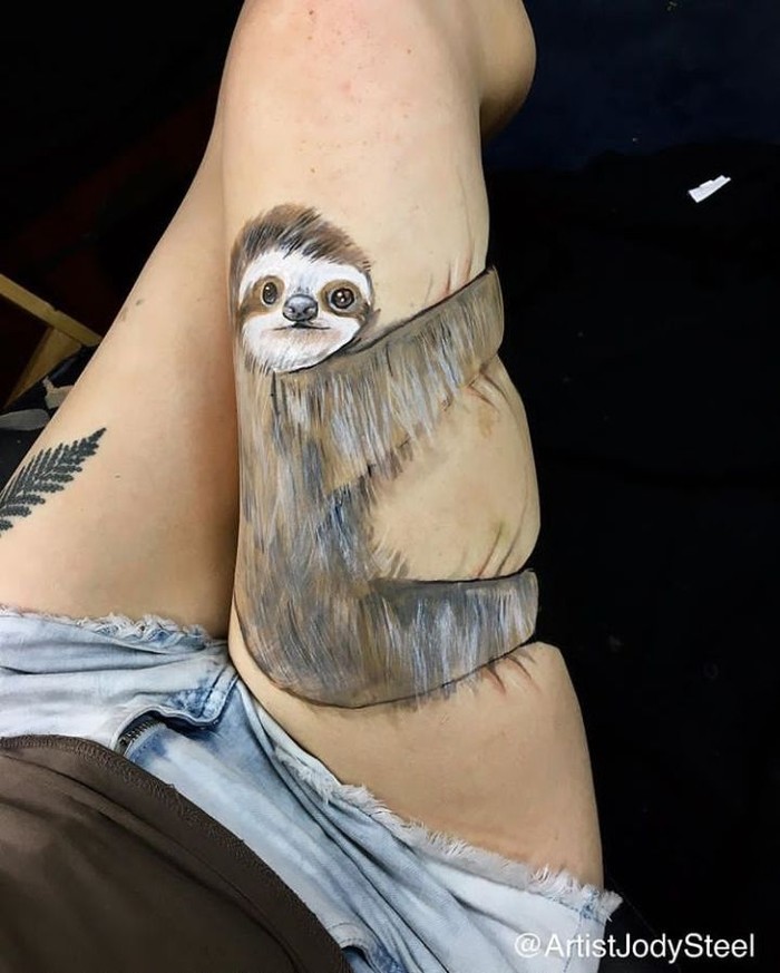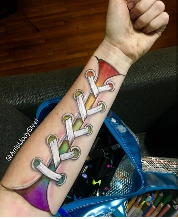 Ia menggunakan bagian tubuhnya sebagai kanvasnya. Foto: Instagram @artistjodysteel