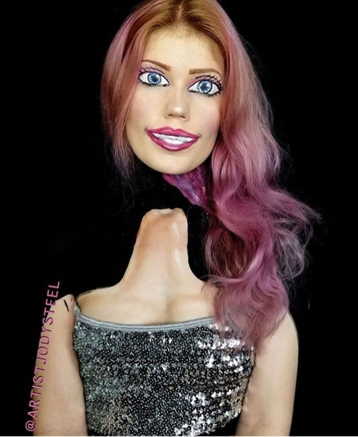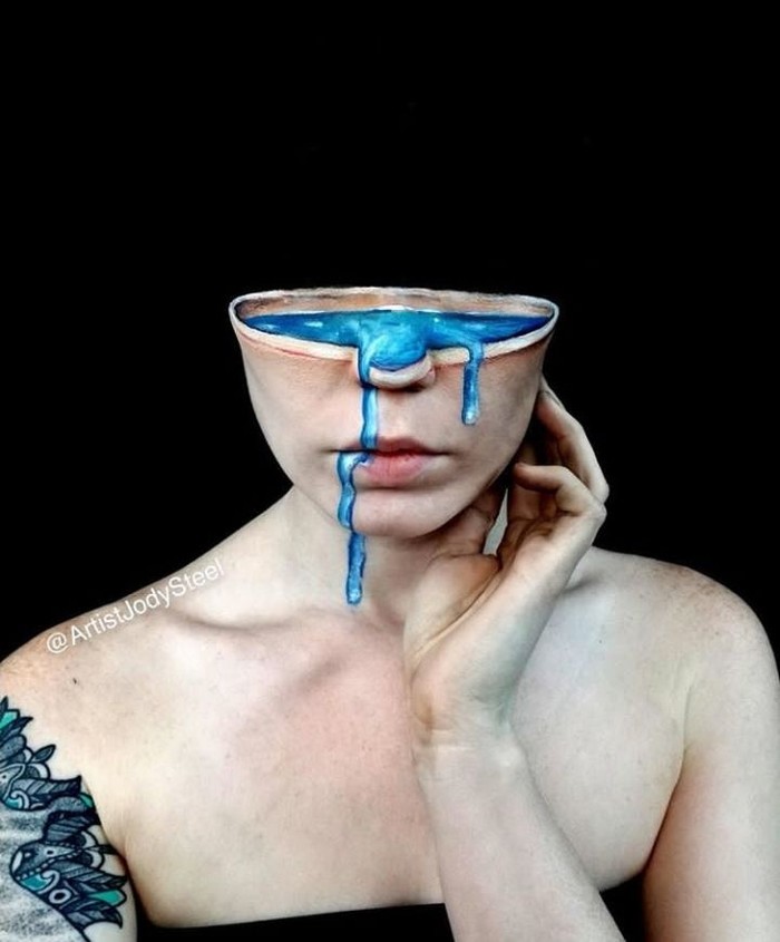 Ia menggunakan bahan-bahan seperti alat makeup bahkan cat air warna-warni untuk melukis di tubuhnya. Foto: Instagram @artistjodysteel
