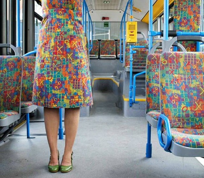 Waduh, ini bajunya sisaan kain jok bus atau kebalikannya? Foto: via Brainberries
