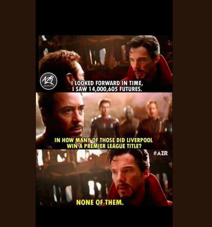 Penerawangan Dr Strange ke masa depan di mana ia tak melihat sekalipun Liverpool juara. Foto: istimewa