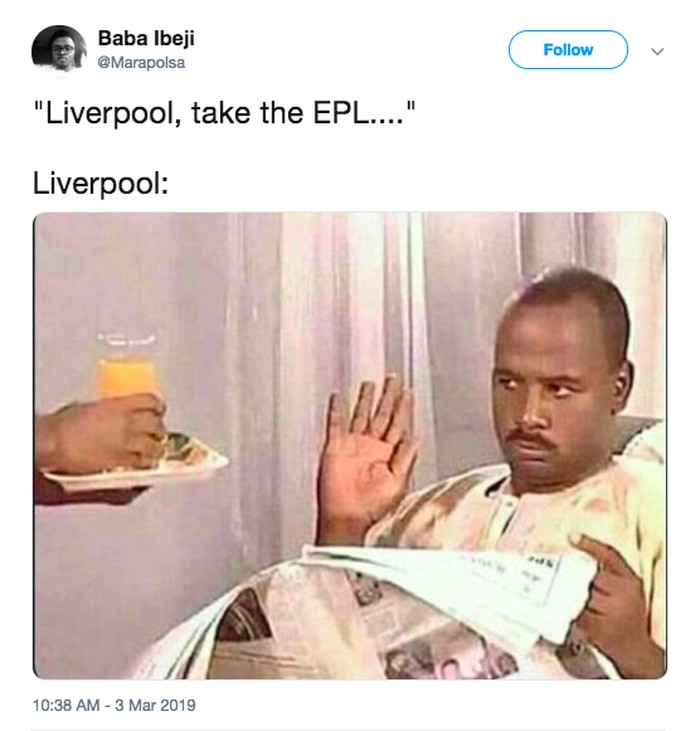 Menurut meme ini, peluang Liverpool juara telah hilang bersama angin. Foto: istimewa