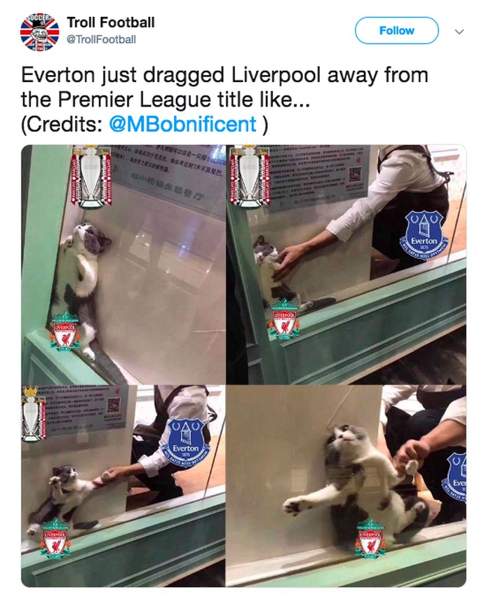 Meme candaan Everton dibayar City agar menahan laju Liverpool. Foto: istimewa