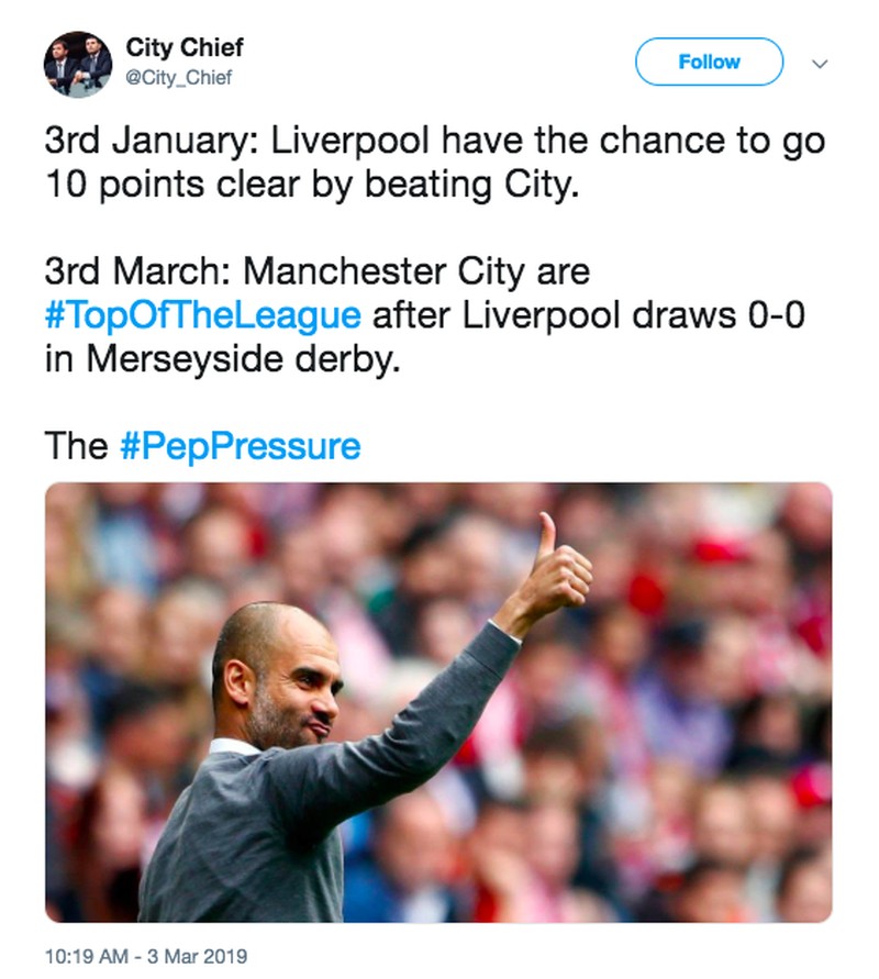 Pada 3 Januari, Liverpool jauh di atas City poinnya. Sekarang, City berhasil melampauinya. Foto: istimewa