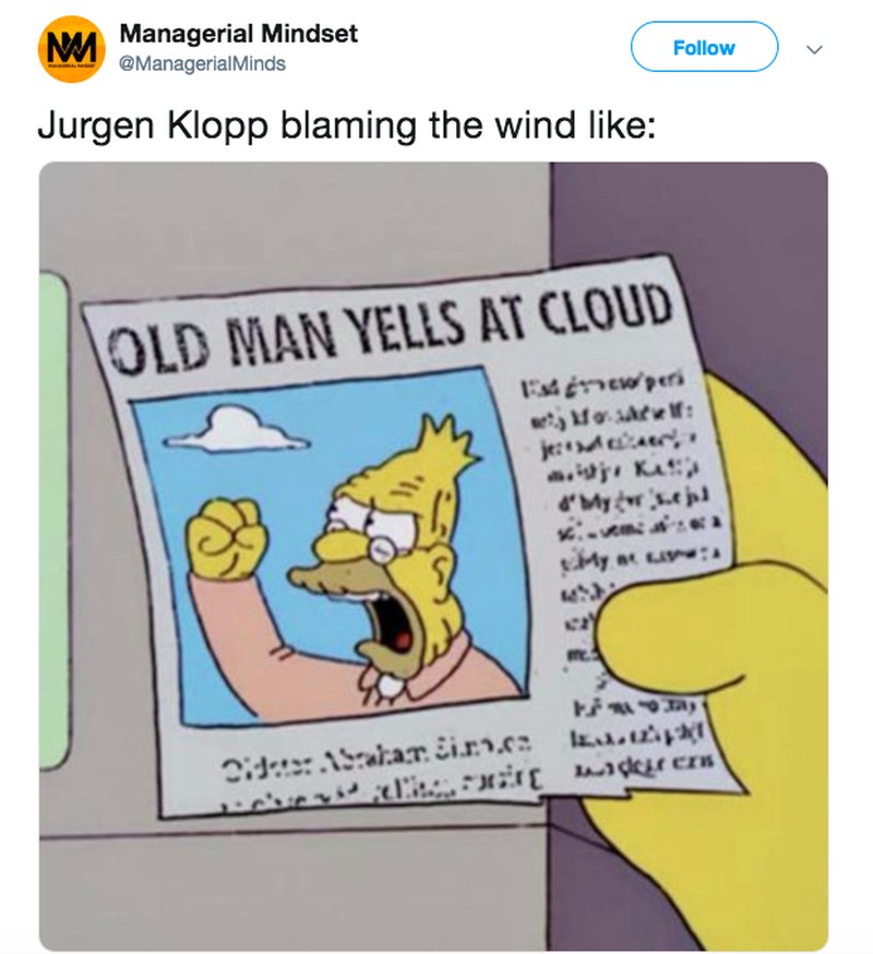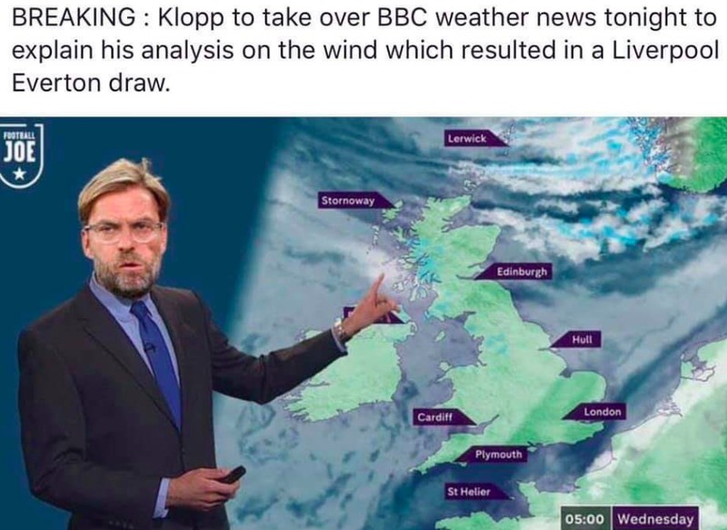 Jurgen Klopp juga banyak disindir karena menyalahkan cuaca. Foto: istimewa