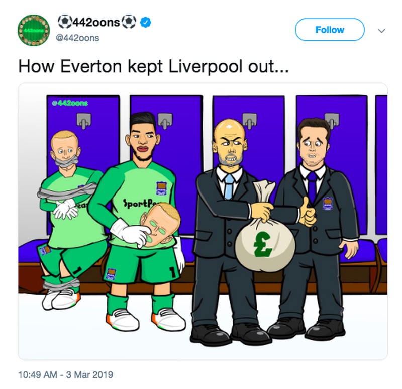 Meme candaan Everton dibayar City agar menahan laju Liverpool. Foto: istimewa