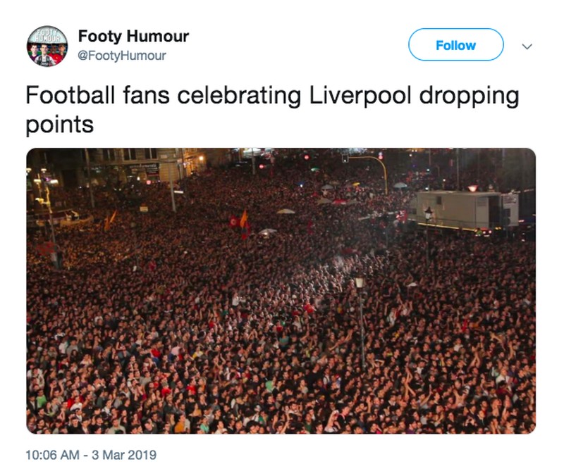 Fans lawan merayakan Liverpool kehilangan poin. Foto: istimewa