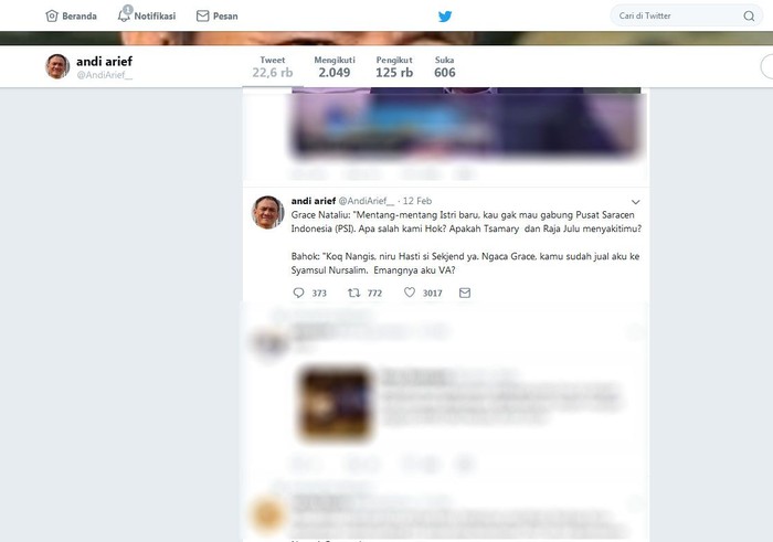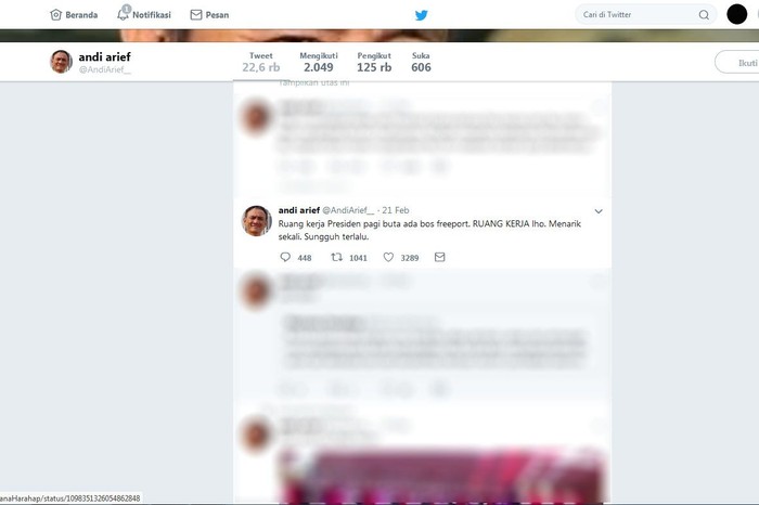 Pengambilalihan saham Freeport oleh IndonesiaΒ juga tak lepas dari bahasan sang politisi di akun media sosial Twitternya. Istimewa/Dok. Twitter Andi Arief.