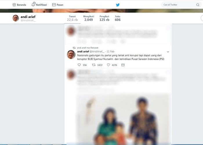 Andi Arief terkenal aktif di media sosial, salah satunya Twitter. Istimewa/Dok. Twitter Andi Arief.