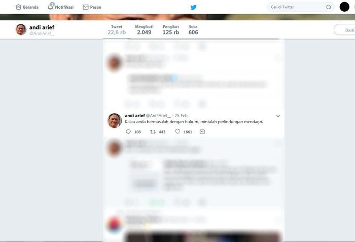 Andi Arief pun pernah membuat cuitan untuk meminta bantuan Mendagri saat terjerat kasus hukum. Istimewa/Dok. Twitter Andi Arief.