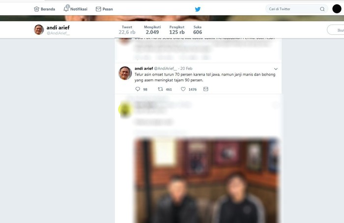 Andi Arief juga pernah mencuit tentang Tol Trans Jawa yang disebutnya justru menurunkan omset pengusaha telur asin. Istimewa/Dok. Twitter Andi Arief.