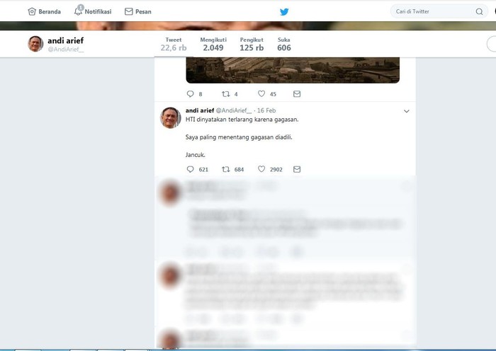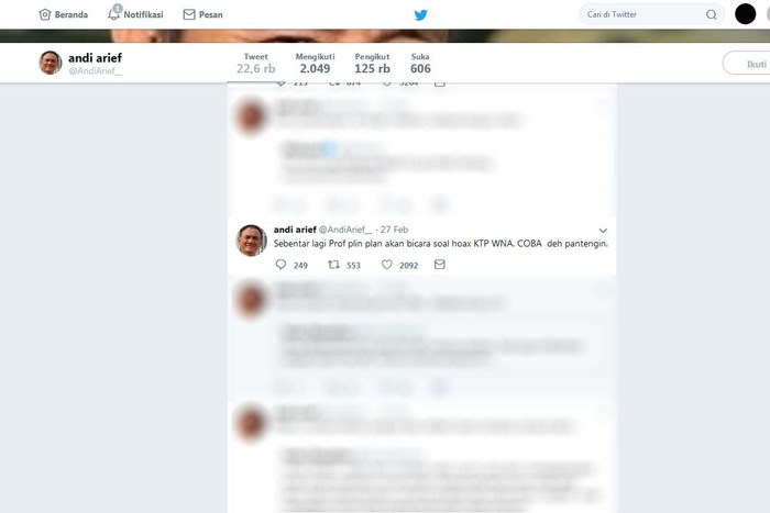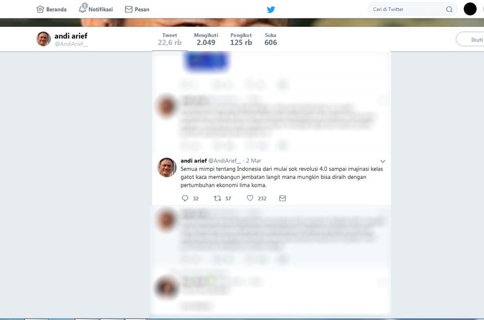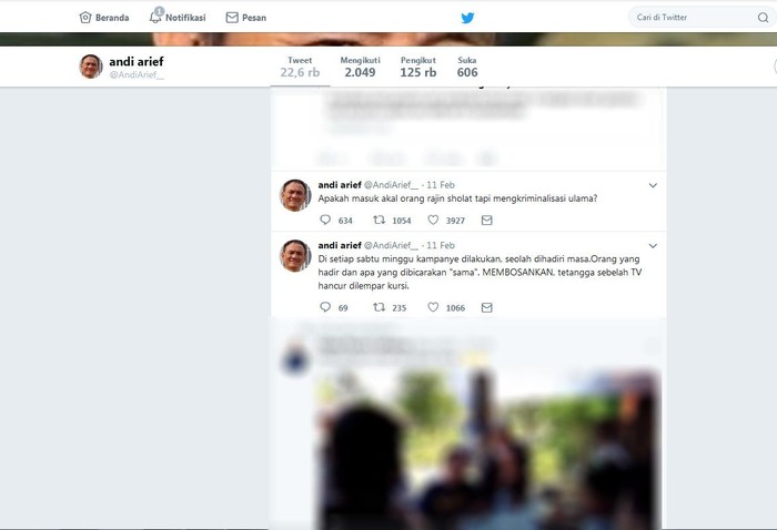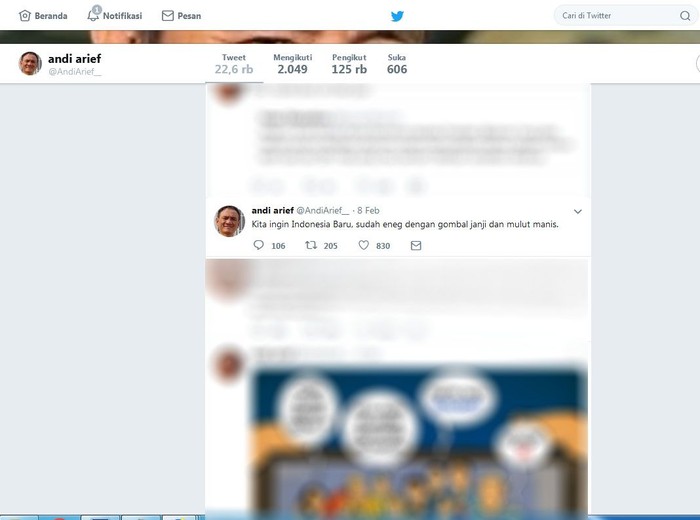 Andi Arief pun tak jarang mengkritik lawan politiknya di akun media sosial Twitter. Istimewa/Dok. Twitter Andi Arief.