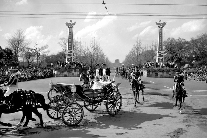 Salah satu area di Jepang pada tahun 1959 yang menjadi area parade pernikahan pangeran AKihito dan putri Michiko. Foto: Vintages