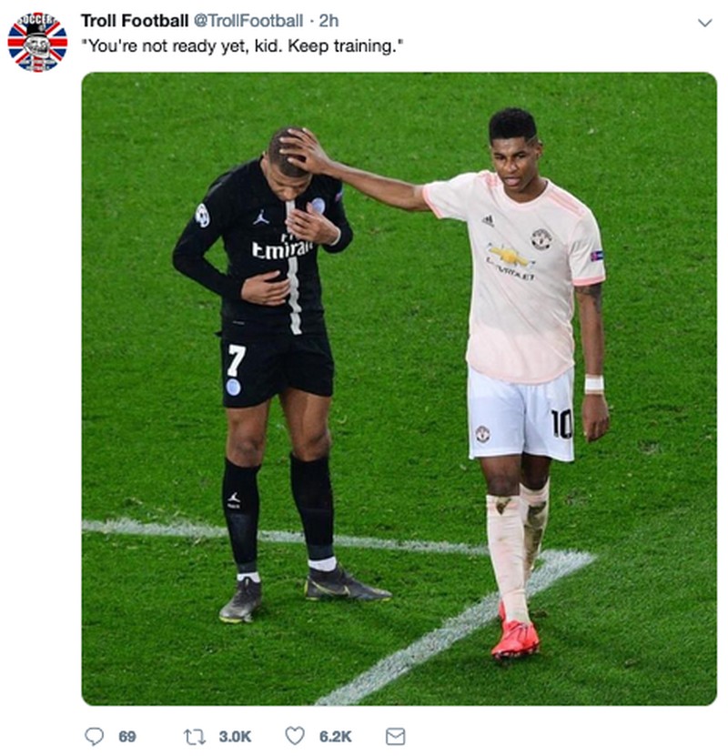 MU lolos secara dramatis ke perempatfinal Liga Champions dengan menyingkirkan PSG. (Foto: Internet/Twitter)
