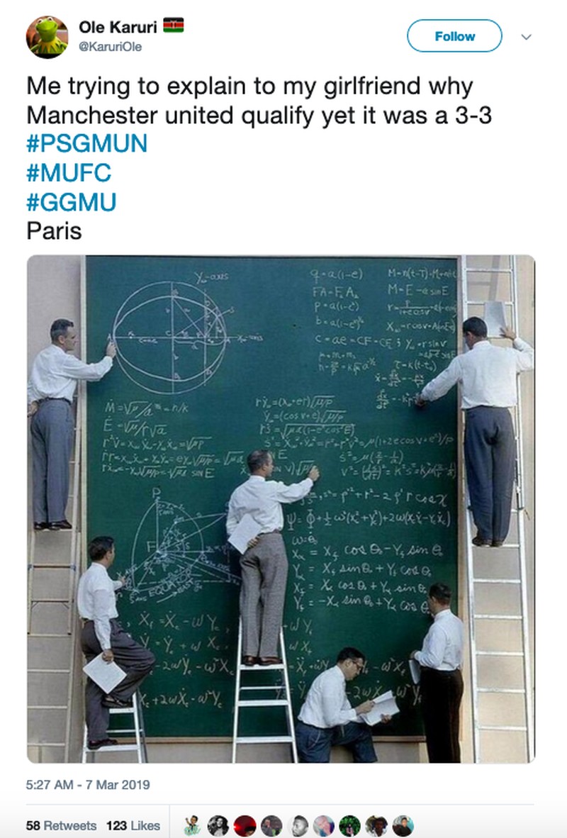 MU dan PSG punya agregat 3-3, tapi The Red Devils mampu menyingkirkan Les Parisiens berkat produktivitas gol tandang. Nah, meme ini mengungkap kesulitan seorang netizen menjelaskan hal itu ke pacar. (Foto: Internet/Twitter)