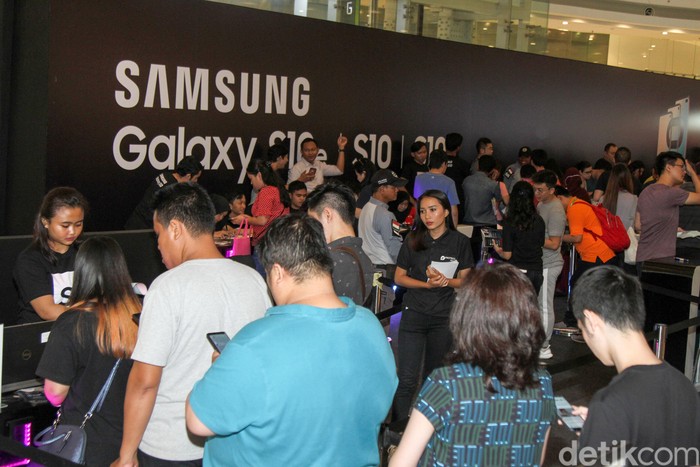 Dihari perdananya Samsung Galaxy S10 mampu mengundang antusias warga.Β Β (Foto: detikINET/Rifkianto Nugroho)