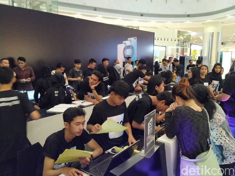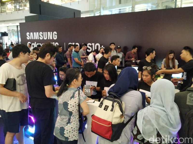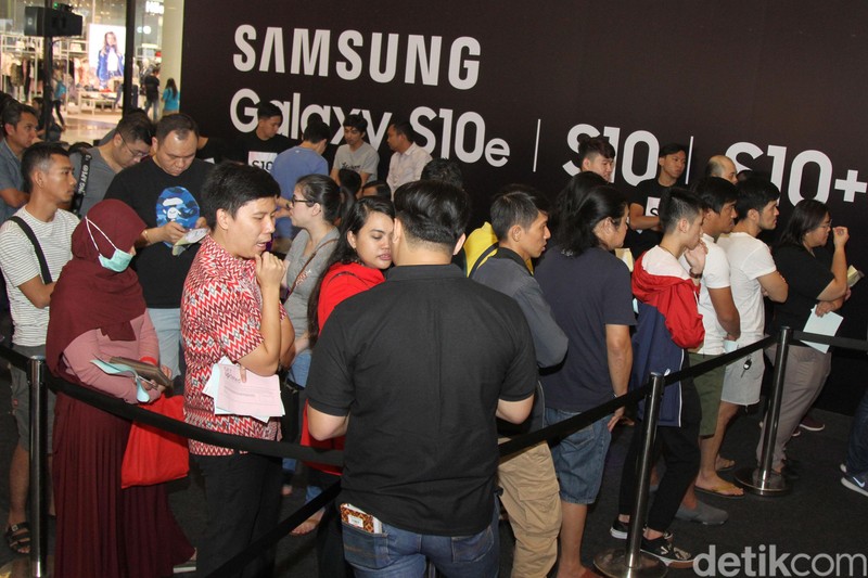 Dihari perdananya Samsung Galaxy S10 mampu mengundang antusias warga. (Foto: detikINET/Rifkianto Nugroho)