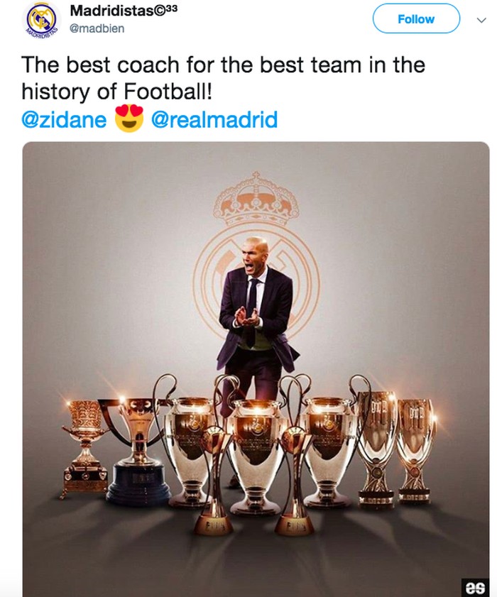 Di era pertama melatih Madrid, Zidane menorehkan prestasi gemilang. Foto: istimewa