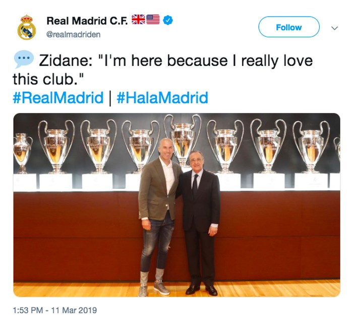 Zidane bilang ia kembali karena ia sungguh cinta Real Madrid. Foto: istimewa
