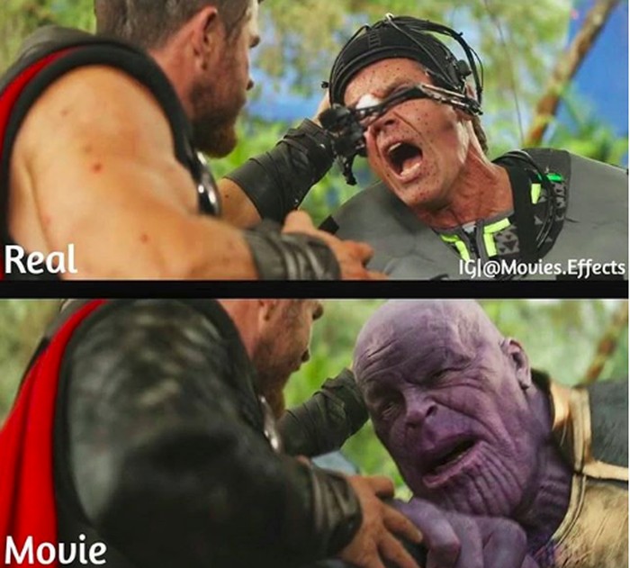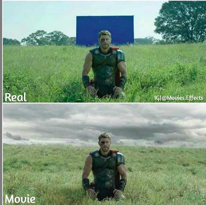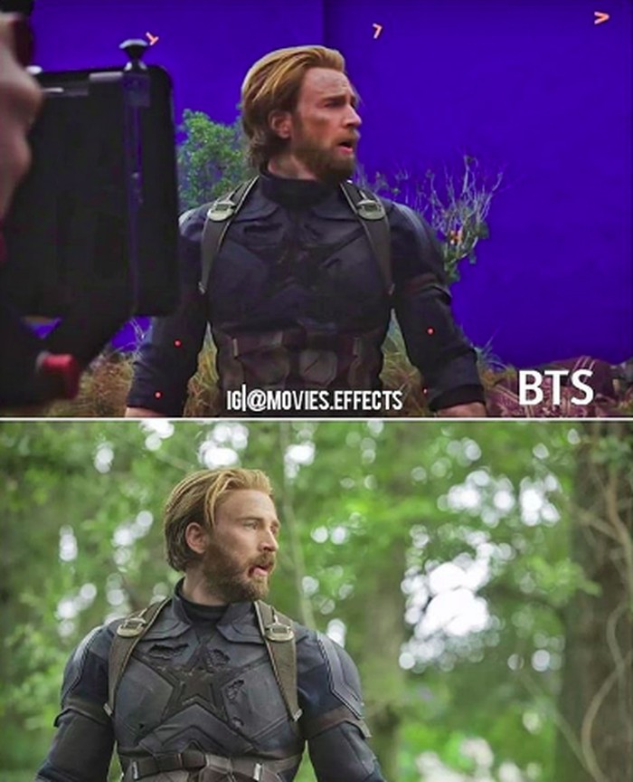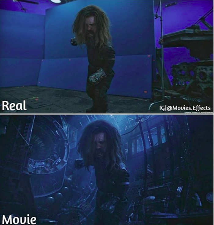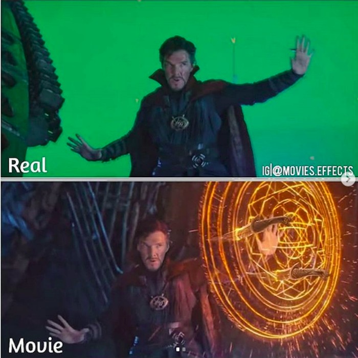 Selain dengan teknologi CGI, pembuat film juga menggunakan layar berwarna hijau atau dikenal dengan green screen. Adegan di filmΒ Avengers Infinity War. (Foto: Instagram/movies.effects)
