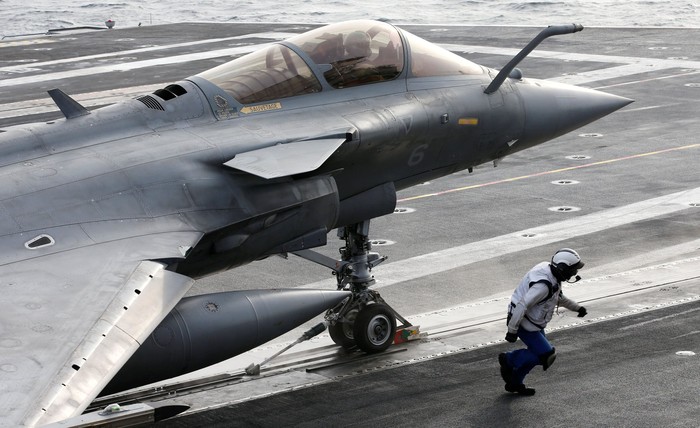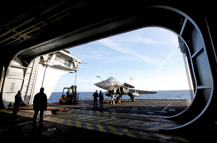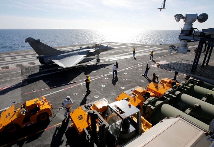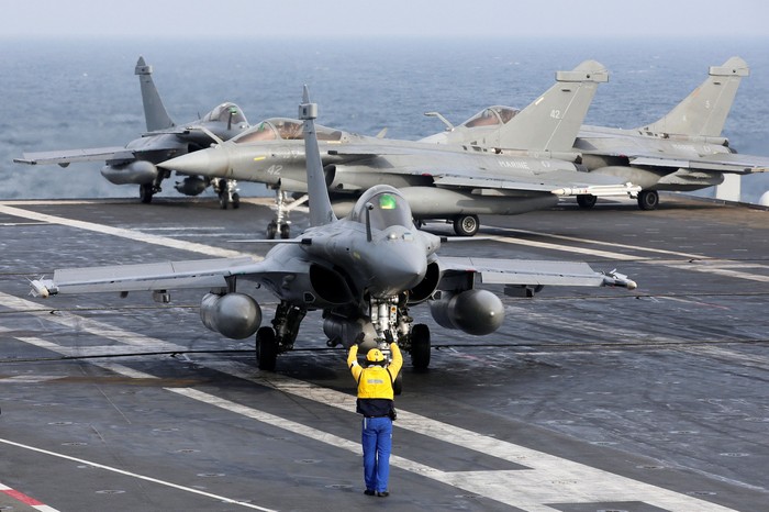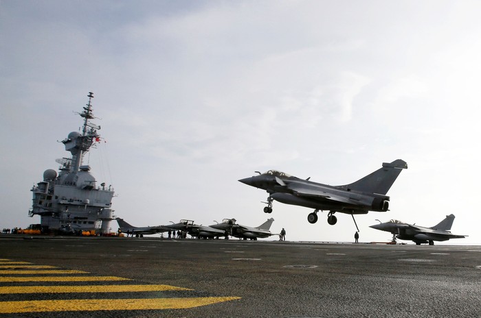 Pesawat Rafale yang juga buatan Prancis menjadi andalan kapal ini. Charles de Gaulle berlayar menuju Asia, tapi sebelumnya selama sebulan mereka akan terlibat dalam operasi Prancis melawan ISIS di Suriah. Foto: Reuters