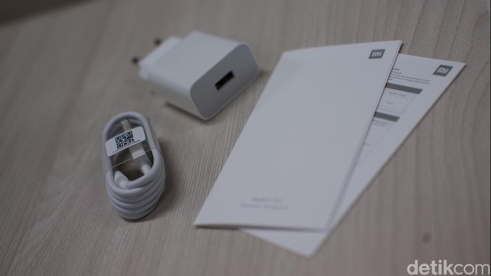 Dalam paket penjualannya hanya diberikan kabel data, kepala charger, jarum pembuka slot SIM Card dan buku petunjuk penggunaan. Foto: Adi Fida Rahman/detikINET
