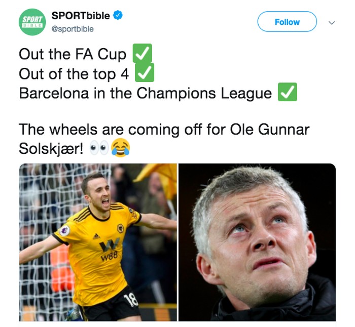 Berbagai media pun melaporkan kekalahan MU dari Wolves di media sosial dengan ilustrasi menarik semacam ini. Foto: istimewa