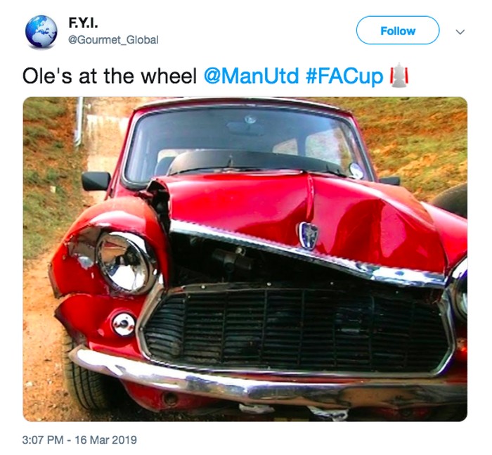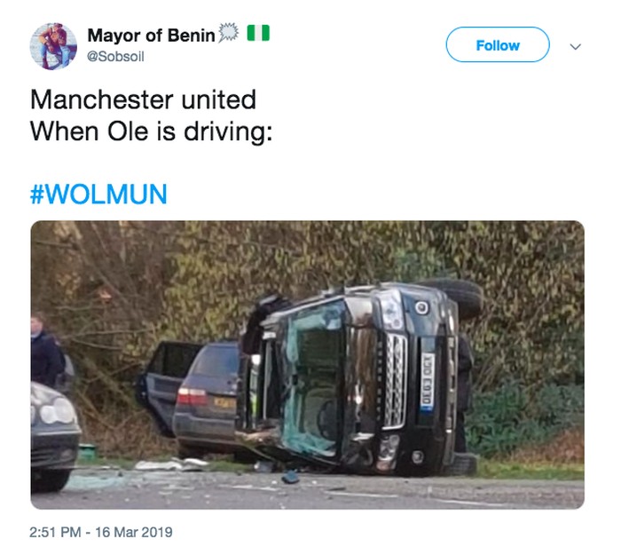 Kembali meme ini menggambarkan mobil MU tabrakan. Foto: istimewa