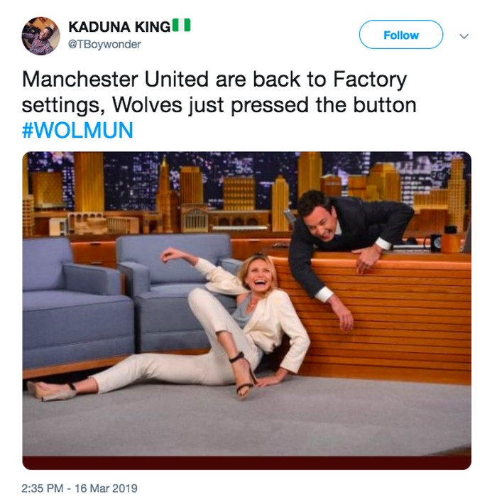 Dikatakan meme ini MU sudah kembali seperti semula alias mudah kalah, direset ke factory setting oleh Wolves. Foto: istimewa