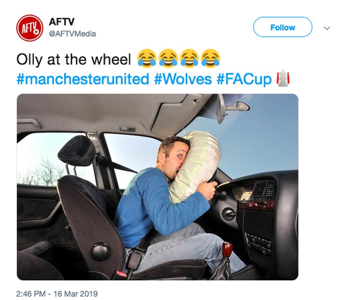 Mobil MU yang seolah dikemudikan Ole dan biasa dinyanyikan sebagai Ole at the Wheel mengalami kecelakaan sampai keluar airbag. Foto: istimewa