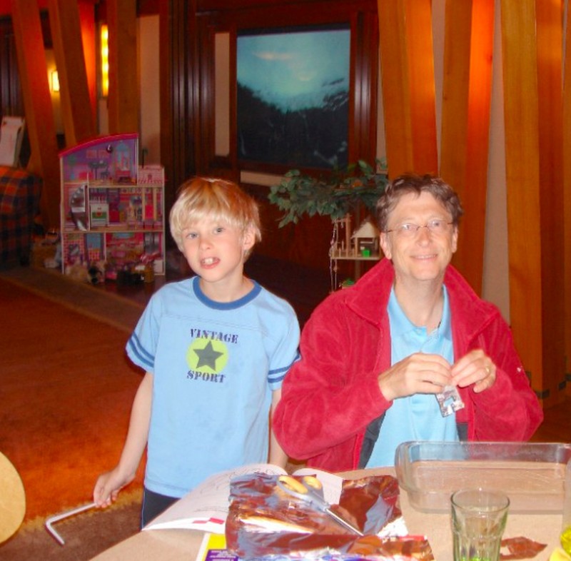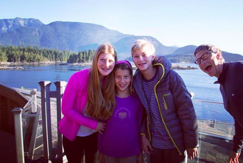 Rory beberapa tahun lampau saat liburan. Tampak Bill Gates bereskpresi lucu di sampingnya. Foto: Instagram