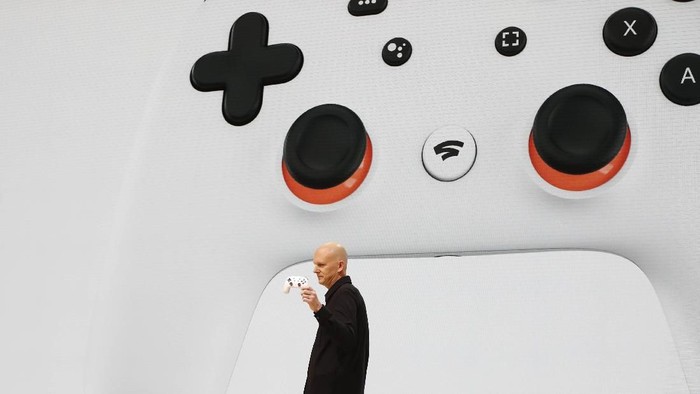 Game di Stadia pada dasarnya bisa dimainkan dengan keyboard dan mouse. Bahkan diklaim dapat pula memakai controller game Microsoft, Sony, maupun Nintendo. Tapi controller khusus ini punya sejumlahΒ daya piket untuk membuat main di Stadia jadi lebih nikmat. (Foto: Justin Sullivan/Getty Images)