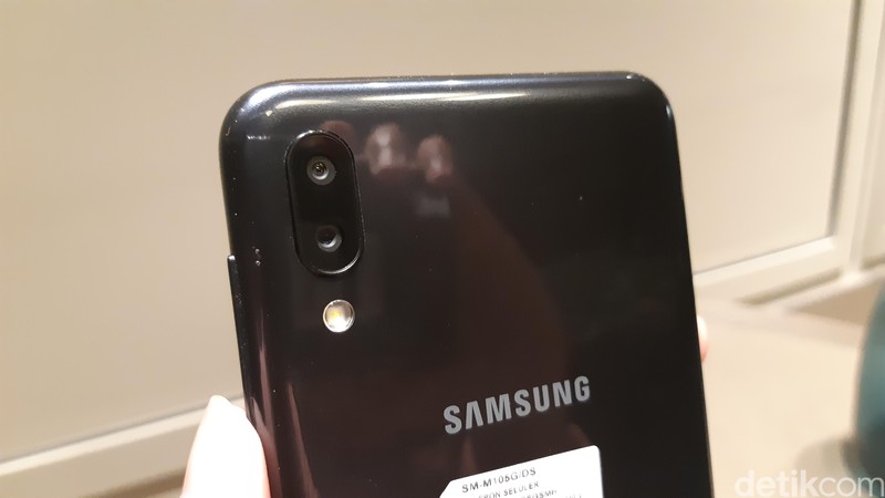 Galaxy M10 dibekali dua kamera belakang dan flash LED. (Foto: detikINET/Virgina Maulita Putri)