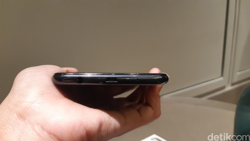 Sedangkan slot kartu SIM dan microSD berada di sisi kiri. (Foto: detikINET/Virgina Maulita Putri)