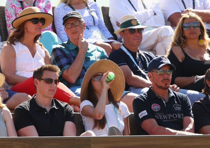 Bill Gates baru-baru ini menonton tenis BNP Parisbas Open di Indian Wells, California. Ia bersama sang istri, Melinda, berada di tribun VIP. Tampak di bagian bawah paling kanan, ada pendiri Oracle, Larry Ellison, yang juga seorang penikmat tenis. Foto: Getty Images