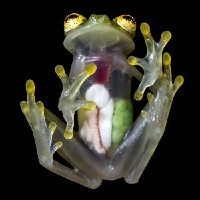 Katak kaca ini ditemukan di hutan hujan Kosta Rika, Panama, Kolombia dan Ekuador. Kulitnya transparan sehingga organ dalamnya terlihat semua. Foto: boredpanda