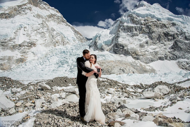 Gunung Everest ternyata juga pernah menjadi lokasi pemotretan kedua pasangan yang hendak menikah loh, alias pre-wedding. Foto: Charleton Churchill