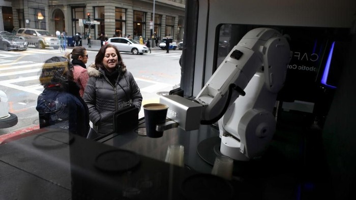 Robot barista ini hadir di Cafe X, San Francisco, Amerika Serikat. (Foto: Justin Sullivan/Getty Images)