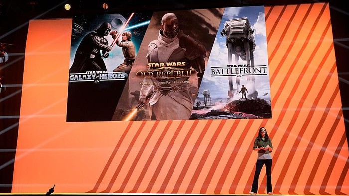 Jade Raymond di atas panggung E3 2016. (Foto: Kevork Djansezian/Getty Images)