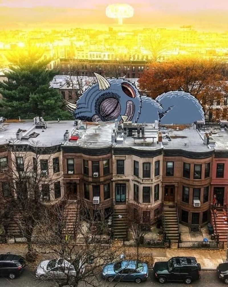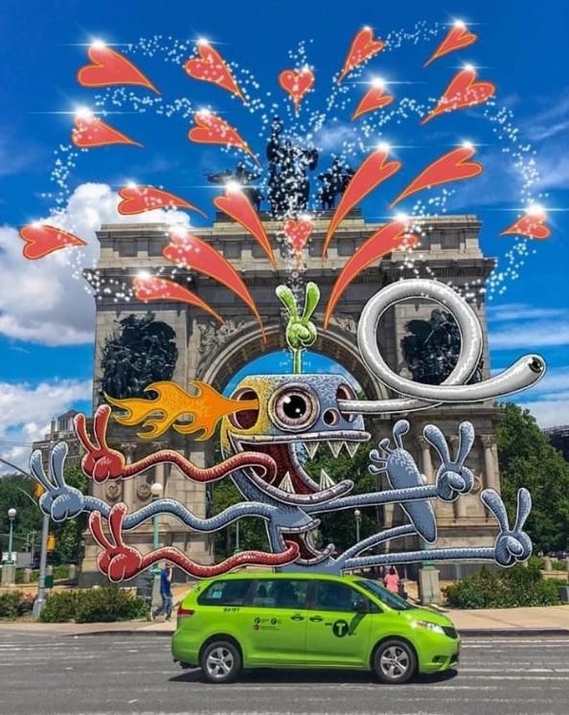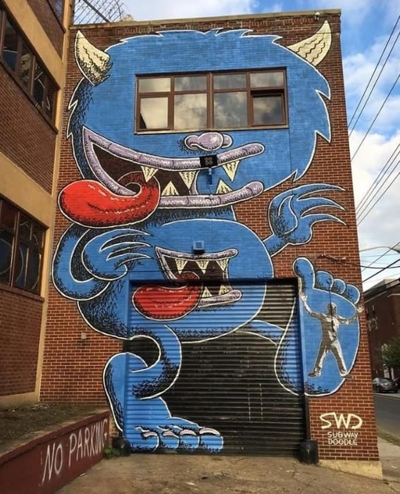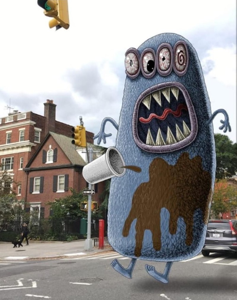Kini ia 'mengajak' doodle monsternya keluar dari subway dan keliling kota. (Foto: Instagram/subwaydoodle)
