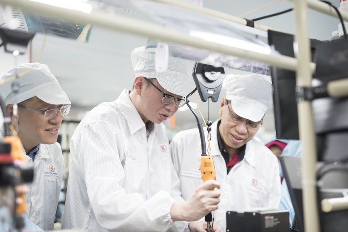 Steven Shi, Country Head Xiaomi Indonesia, melakukan inspeksi terhadap proses perakitan berbagai produk Xiaomi di PT. Sat Nusapersada. Foto: Xiaomi
