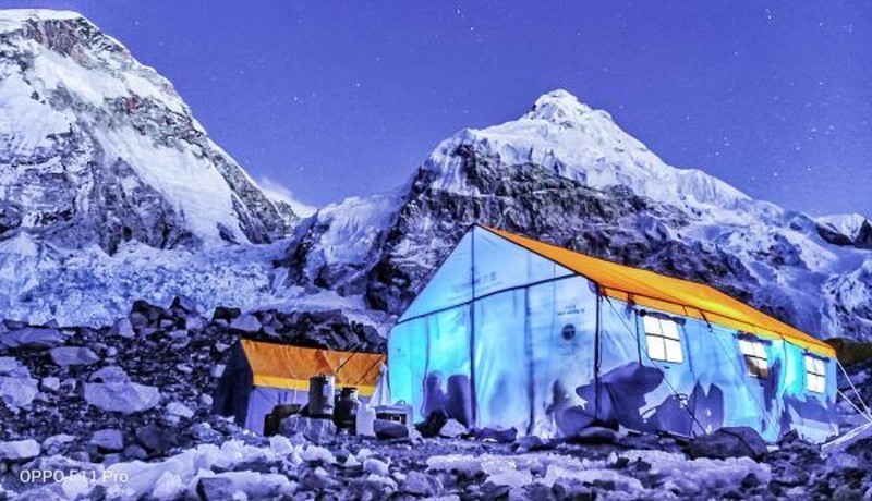 Oppo mengajak fotografer Adam Meng dan ahli pegunungan Dr Nima Namgyal Sherpa menjelajahi base camp Everest untuk menjepret keagungan gunung itu dengan Oppo F11 Pro. Foto: Oppo
