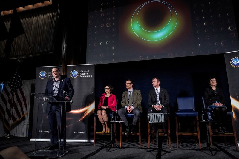 Berdasarkan foto yang dirilis, lubang hitam ini berwarna kuning melingkari titik hitam dipusatnya, serupa cincin api. (Foto: Reuters)