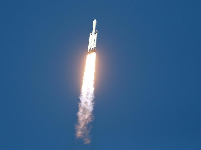 Saat lepas landas, daya dorong Falcon Heavy dapat mencapai 5,13 juta pound of thrust, atau 22.819 kilonewton, yang setara dengan 18 unit Boeing 747.Β Foto: Thom Baur/Reuters