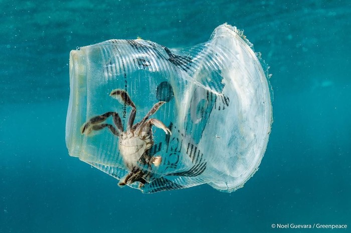 Sampah plastik minuman membuat kepiting ini terjebak di dalamnya. Foto ini diambil di Teluk Batangas, Filipina.Β (Foto: Brightside)