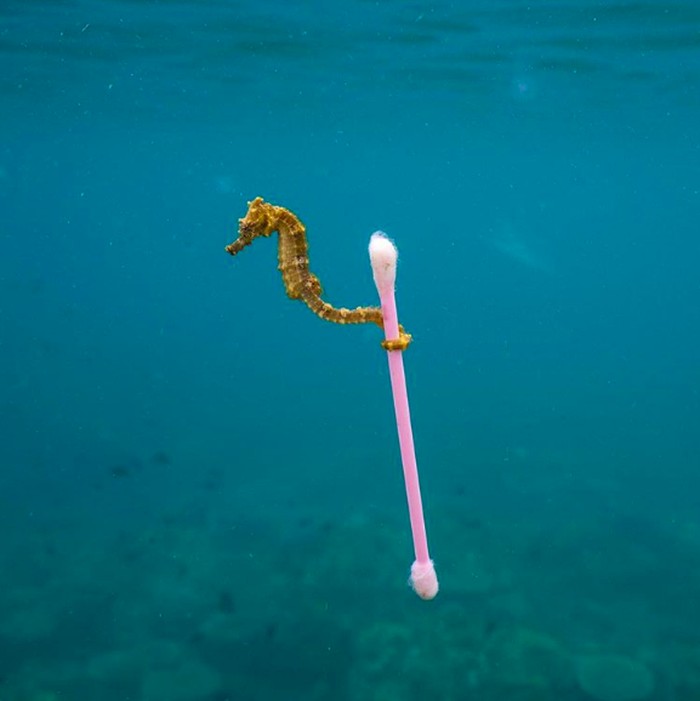 Foto yang sempat viral di media sosial, kuda luat seolah membawa sampah korek kuping untuk dibuang. (Foto: Brightside)